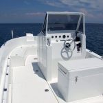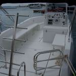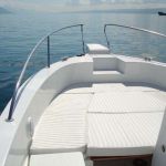 The boat can accommodate as many as 12 to 14 persons. For the purpose you wouldn’t miss anything the boat is equipped with the fuel tank 400 litre capacity and the fresh water tank 150 litre capacity. Everything you might need during your 24 hour stay aboard can be put into numerous big storage compartments. There is also the toilet in standing height with cabin hatch that is ingeniously situated inside steerage console.