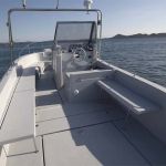 Orka 740 Open has an exceptionally big cockpit with outflows that allow water drain. The entire floor surface is covered with modern, firm and resistant non-skid oval pattern that is both functional and nice looking. The boat is always easily accessible, whether you climb the swimming ladder on the way out of the water or you step aboard over the wide and spacious platform through the wide entrance or from the side. In its additional equipment Orka 740 Open has a great variety of bimini sunshades made of high quality stainless steel and UV resistant and impregnated fabric. One can choose to cover only the bow section, the stern section or the entire boat with two bimini sunshades. A hardtop above the skipper is also an option.