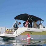 Orka 740 bietet in der Sonderausstattung auch verschiedene Kombinationen von imprägnierten Bimini Sonnensegeln an, die auf einem aus hochqualitativen Inox gefertigten Träger montiert werden und vor direkter Sonnenstrahlung und UV-Strahlen schützen. Dabei können Sie frei auswählen, ob Sie den Bugbereich, den Heckbereich oder das ganze Boot schützen oder nur das Hardtop über dem Skipper aufstellen wollen.