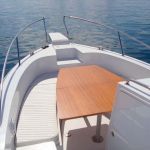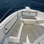 Das große Cockpit ist selbstentleerend und die gesamte Bodenfläche ist mit modernen, festen und rutschfesten Flächen mit ovalen Mustern bedeckt, die neben ihrer Funktionalität auch hübsch aussehen. Das Einsteigen ins Boot ist immer einfach, sei es, daß Sie aus dem Wasser über eine Leiter kommen, über die breite und geräumige Plattform, den breiten Bugeingang oder einfach von der Seite zusteigen wollen.