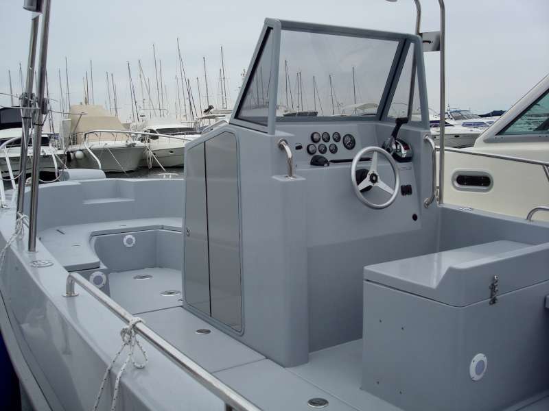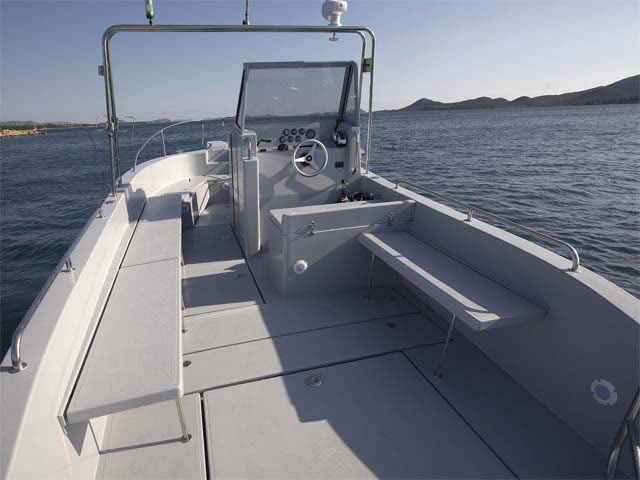 Als Arbeitsboot ist das Orka 740 Open sehr praktisch. Wenn Sie sich für die Ausführung mit einfachem Cockpit entscheiden, haben Sie viel Platz zur Verfügung, ideal für Sport und Erholung, Transport von Gästen.