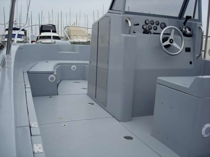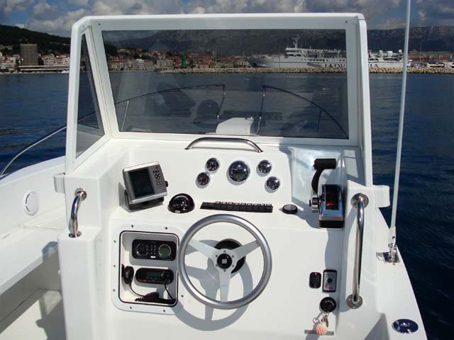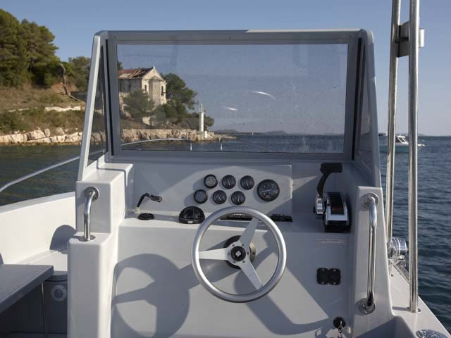 Das Orka 740 zeichnet ein sehr geräumiges Cockpit aus. In der Ausführung als Tauchboot können 12 komplette Tauchausrüstungen im Cockpit untergebracht werden und 12 Taucher finden bequem Platz im Boot. Kein Tauchgebiet ist mit diesem schnellen Boot unerreichbar und die Fahrt zum und vom Tauchgebiet ist bequem, schnell und macht Spaß.