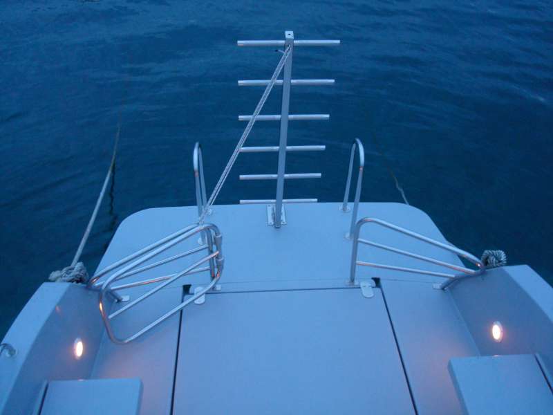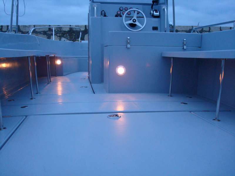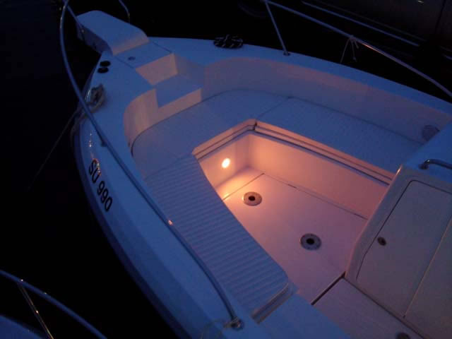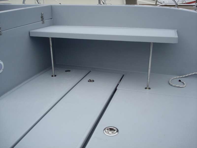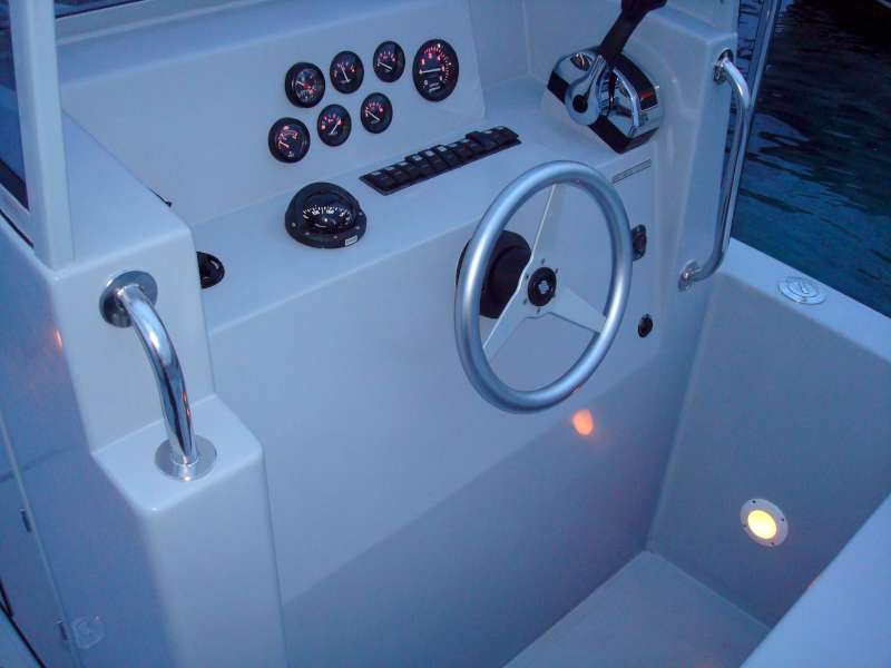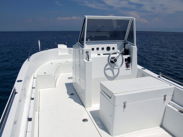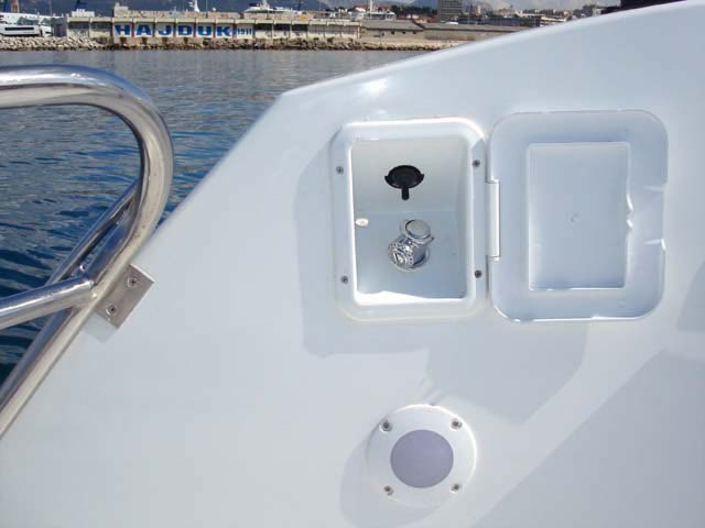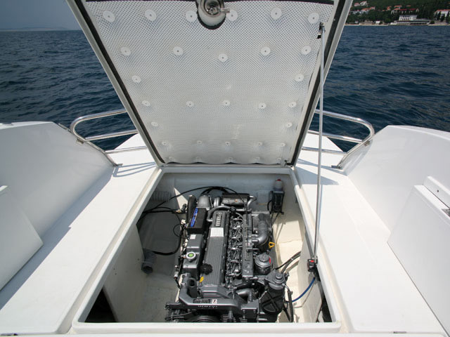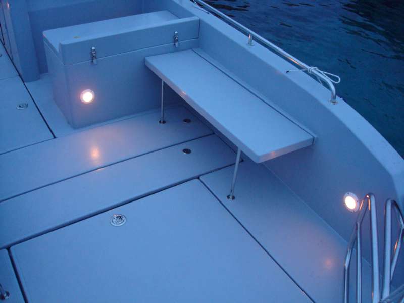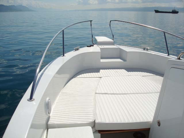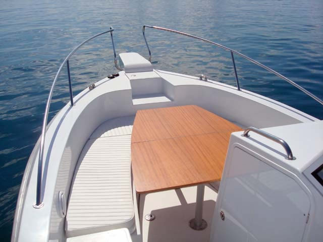 Das große Cockpit ist selbstentleerend und die gesamte Bodenfläche ist mit modernen, festen und rutschfesten Flächen mit ovalen Mustern bedeckt, die neben ihrer Funktionalität auch hübsch aussehen. Das Einsteigen ins Boot ist immer einfach, sei es, daß Sie aus dem Wasser über eine Leiter kommen, über die breite und geräumige Plattform, den breiten Bugeingang oder einfach von der Seite zusteigen wollen.