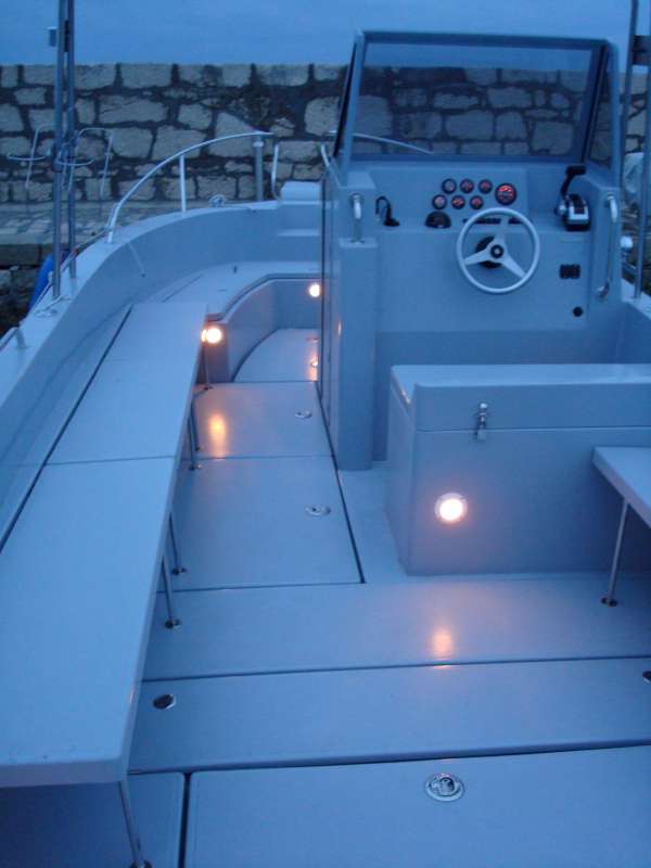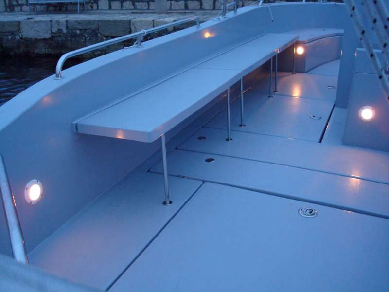 The boat can accommodate as many as 12 to 14 persons. For the purpose you wouldn’t miss anything the boat is equipped with the fuel tank 400 litre capacity and the fresh water tank 150 litre capacity. Everything you might need during your 24 hour stay aboard can be put into numerous big storage compartments. There is also the toilet in standing height with cabin hatch that is ingeniously situated inside steerage console.