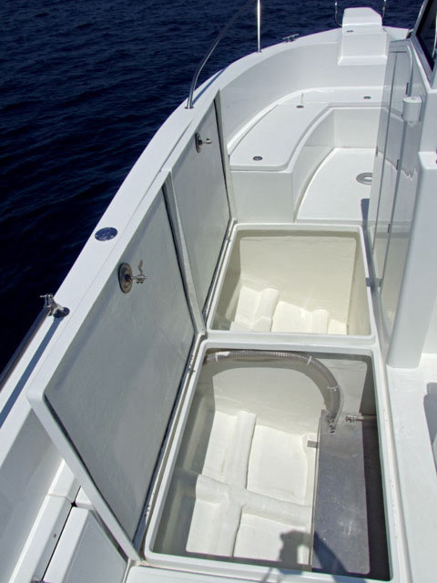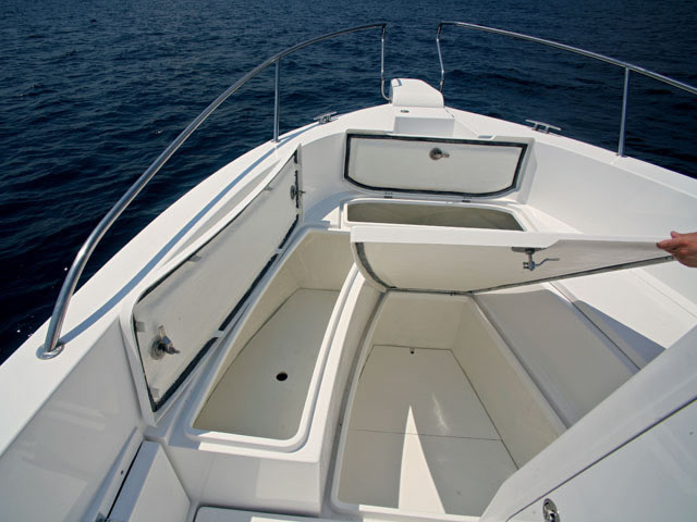 Alles was Sie für einen ganztägigen Bootseinsatz benötigen findet Platz in den großen Stauräumen, mit denen das Orka 740 Open ausgestattet ist. Natürlich gibt es ein begehbares WC mit Ventilation, das raffiniert in die Bedienkonsole integriert wurde.